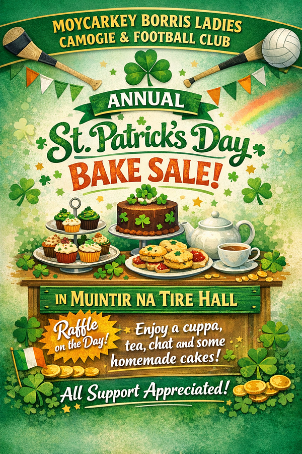 Preparations are underway for our ladies club bake sale and raffle in the Muintir na Tire hall on St Patricks day