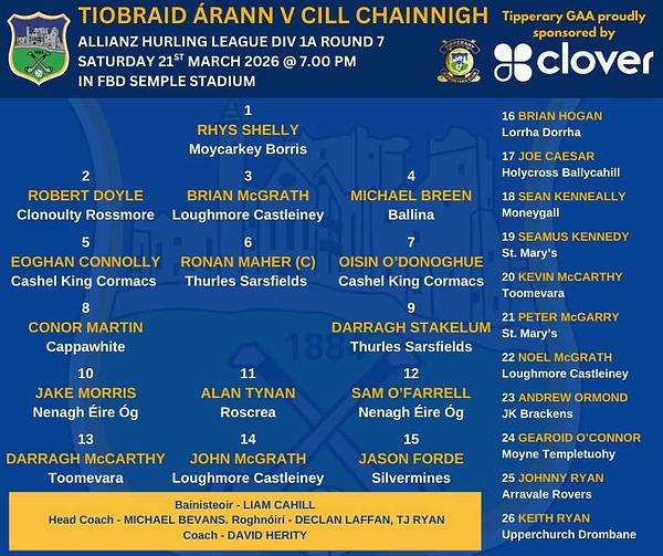 Best of luck to Liam Cahill and the Tipperary team especially Rhys Shelly as they take on old rivals Kilkenny in Semple Stadium Thurles this Saturday evening..