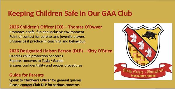 Keeping children safe in Moycarkey borris Gaa is our priority.